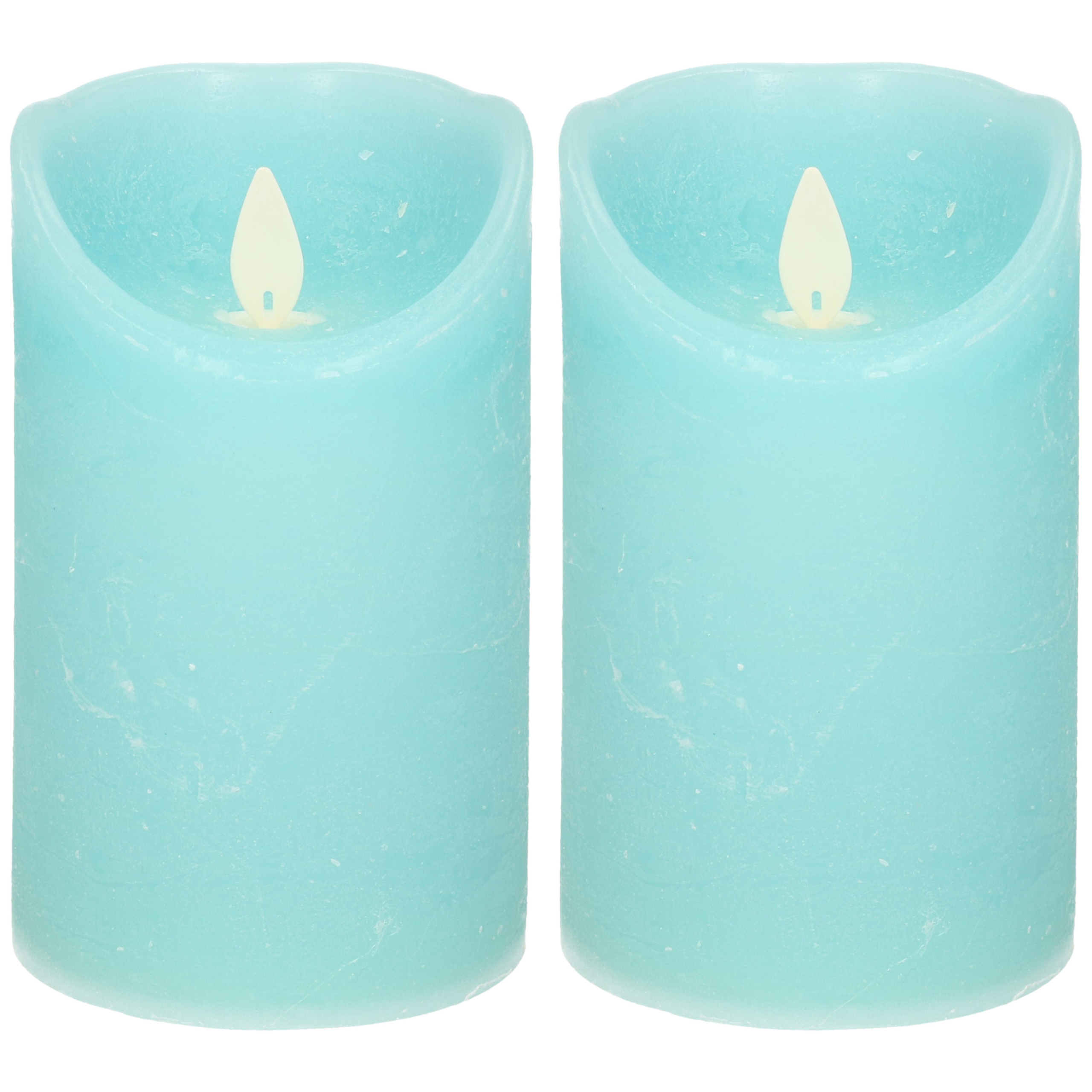 2x Aqua blauwe LED kaarsen / stompkaarsen met bewegende vlam 12,5 cm