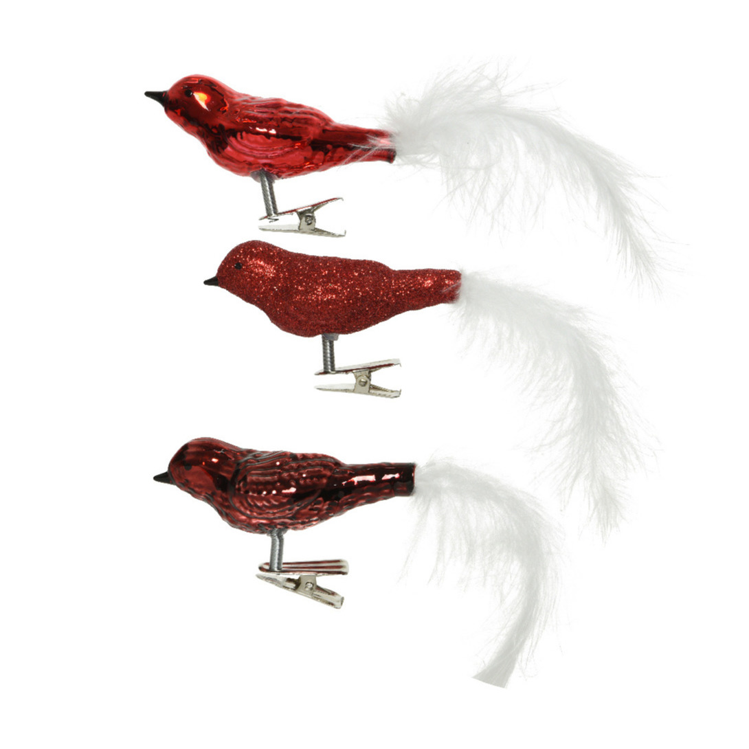 2x stuks luxe glazen decoratie vogels op clip kardinaal rood 15 cm. Deze decoratievogeltjes kunt u ergens aan vast klippen ter decoratie. Bijvoorbeeld aan een tak of in de kerstboom. Vogeltjes op clips kerstboomversiering/kerstdecoratie.
