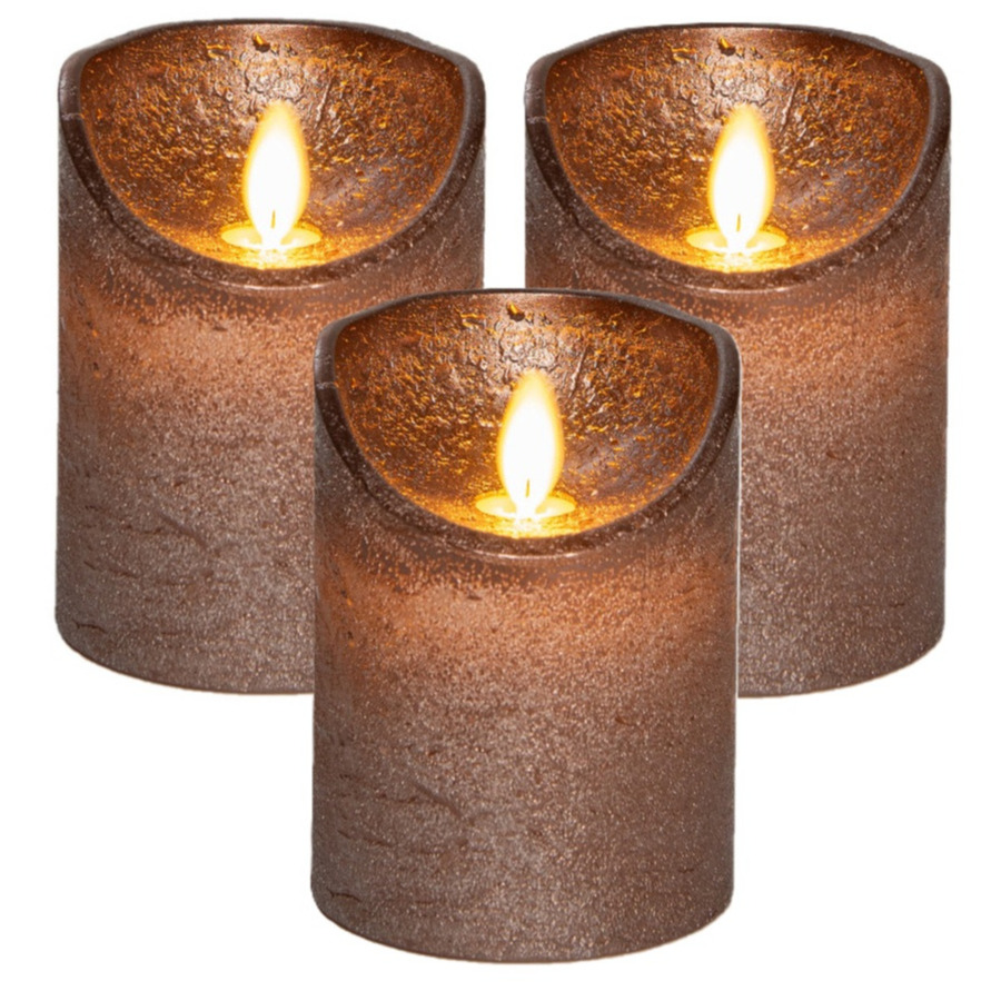 Anna’s Collection Stompkaars – 3x – LED – brons – H10 cm – bewegende vlam – kaars