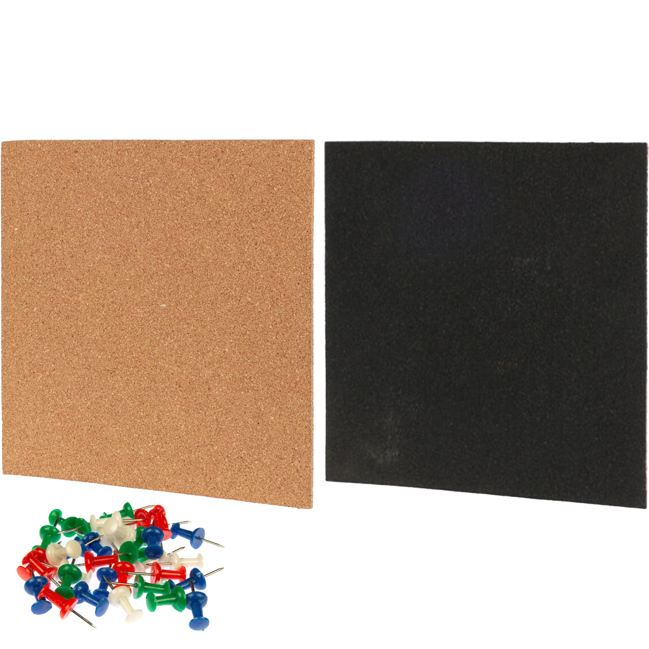Krijtbord/prikbord set – met punaises/krijtmarker – 22 x 22 cm – kurk