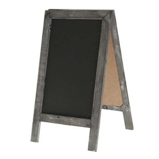 Handig houten krijtbordje in standaard/klapbord uitvoering, ideaal voor het noteren van menu?s, prijzen of korte boodschappen. Perfect voor gebruik in huis, winkel of op evenementen.