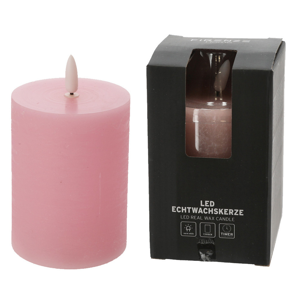 LED kaars/stompkaars – lichtroze – D7,5 x H10 cm – flikkerend licht