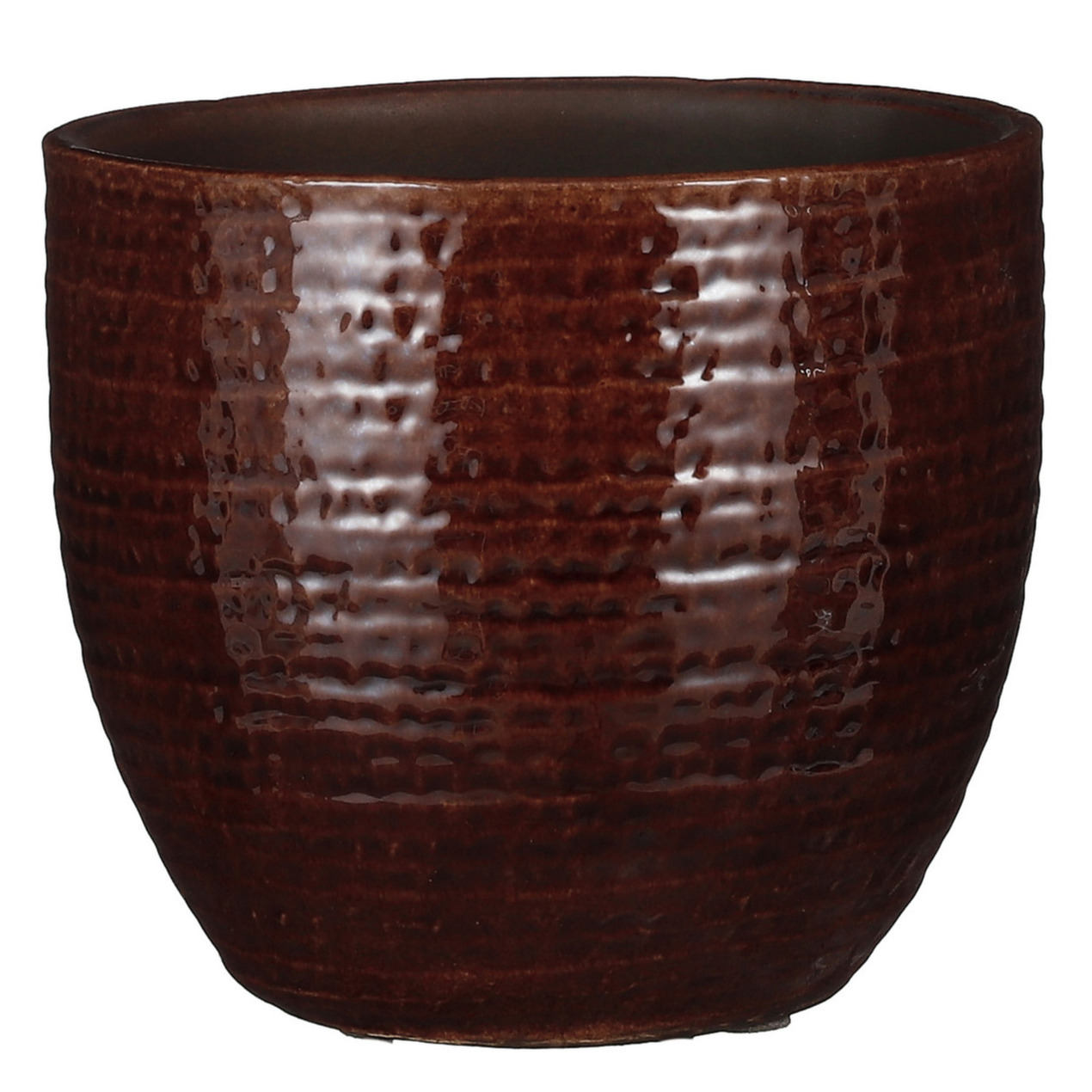 Plantenpot/bloempot van terracotta in de kleur kastanje bruin met een modern relief flakes patroon. Diameter 16 cm en hoogte 14 cm. Stijlvolle bloempotten voor binnen gebruik. Serie: Carrie. De zeer mooie potten met prachtige buitenzijde zijn met de hand gemaakt in Portugal. Derhalve is geen pot exact hetzelfde en hebben de bloempotten een echt karakter. Materiaal: Terracotta. Tip: zet een schotel onder de pot om eventueel lekken tegen te gaan. Potten van steen zijn niet 100% waterdicht.