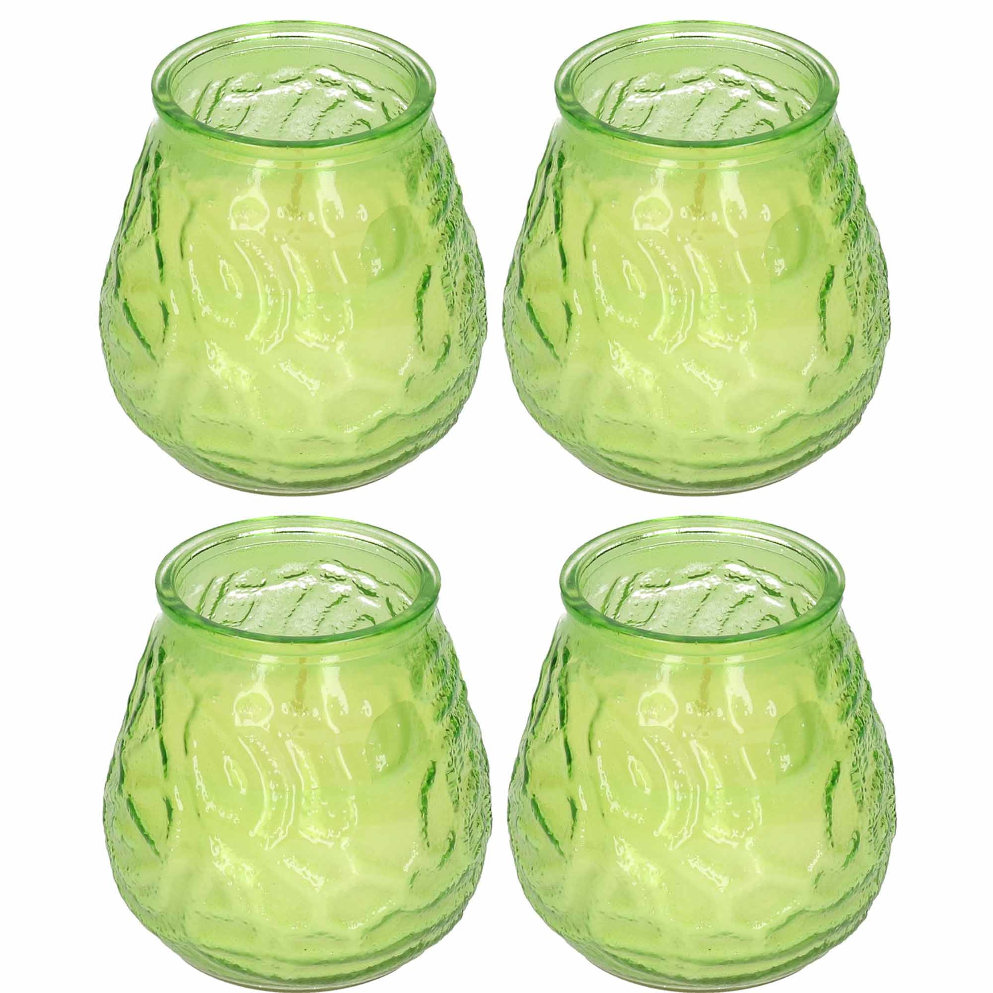 Windlicht geurkaars – 4x – groen glas – 48 branduren – citrusgeur