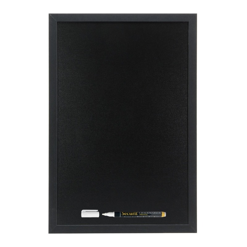 Zwart krijtbord met zwarte rand – 40 x 60 cm – inclusief krijtstift – ophangen